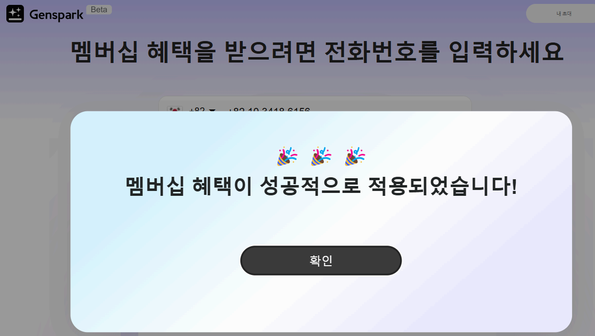 아래 링크로 들어가서 혜택 받기 눌러서 가입하면 1개월동안 무료로 Genspark Plus 혜택을 받을 수 있습니다.